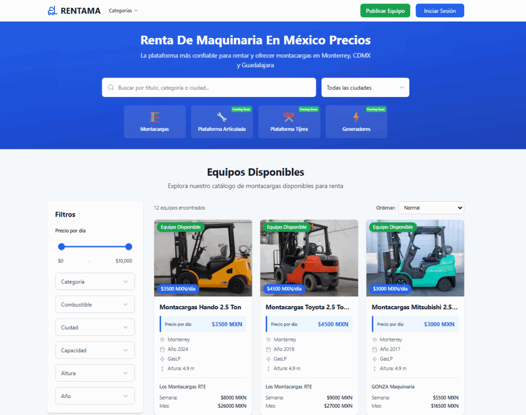 En lugar de depender de largos procedimientos, intermediarios o cotizaciones poco claras, RENTAMA.MX ofrece una experiencia directa, donde el cliente puede explorar las opciones disponibles, elegir el equipo que mejor se adapte a su proyecto y solicitarlo bajo condiciones claras y sin fricciones. Es un modelo que moderniza la industria y la acerca al dinamismo digital que ya existe en otros sectores.